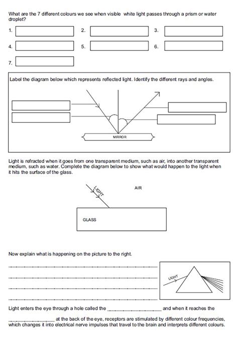Light Worksheet Grade 8. Light is (a) an electromagnetic. Covers transparent, translucent, and opaque substances, as well as rainbow formation, refraction, and reflection.