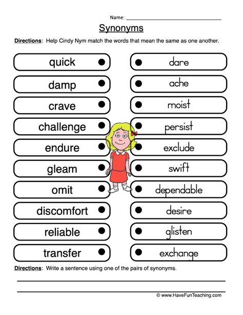 The purpose is to familiarize students with the concept of synonyms and to help build vocabulary. Add to microsoft teams share through whatsapp: Web through a matching exercise, this worksheet introduces common synonyms.