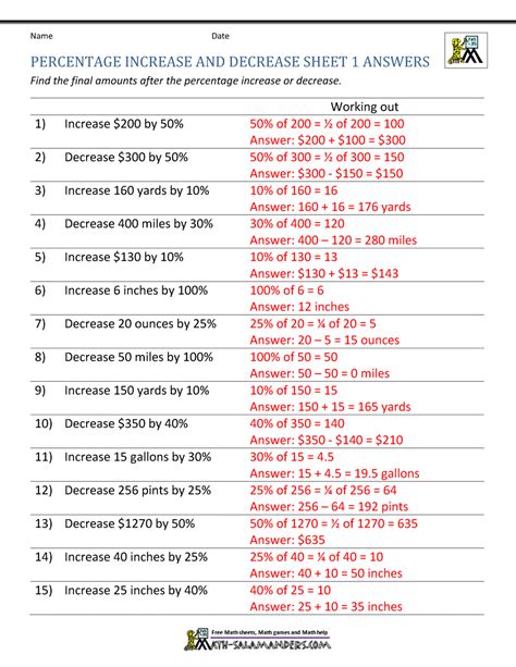 Answer sheet include answer sheet. So, the difference of the two values would be 30 in this example. Printable worksheets for students help calculate percent increase.