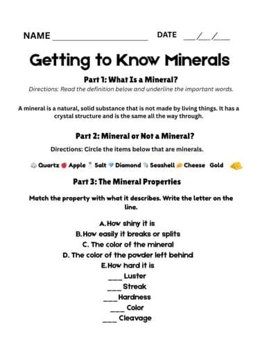 Mineral Properties Worksheet Answer Key. If any of the following statements is a characteristic of a mineral, place a check mark beside it. If it is not, leave it blank.
