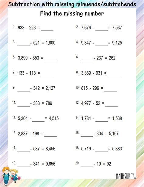 Web They Include 8 Worksheets To Help Students Practice Solving For The Missing Minuend Or Subtrahend In An Equation.