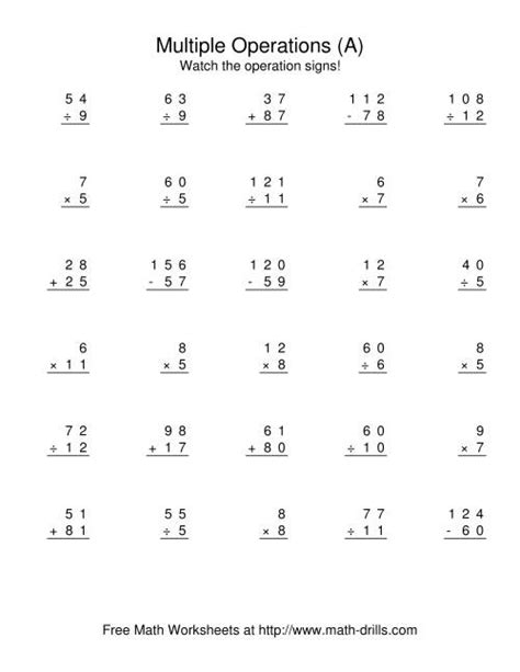 Web students can use math worksheets to master a math skill through practice, in a study group or for peer tutoring. Use the buttons below to print, open, or download. Mixed operations worksheets are a unique way to practice operations for addition, subtraction, multiplication and division.