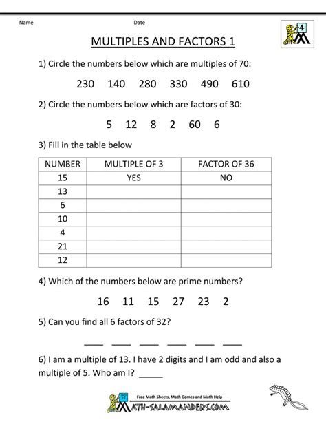Web Worksheets For Class 6 Mathematics Factors And Multiples Have Been Designed As Per The Latest Pattern For Cbse, Ncert And Kvs For Grade 6.